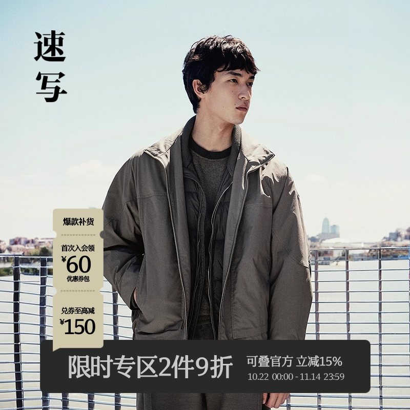 速写男装秋冬新款休闲宽松羽绒服轻薄两件套短款轻暖时尚舒适外套