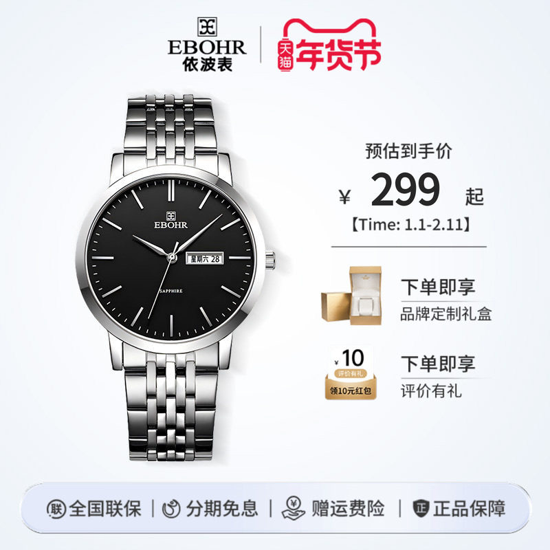 新年礼物依波表EBOHR手表男士休闲学生简约钢带情侣表石英表5029
