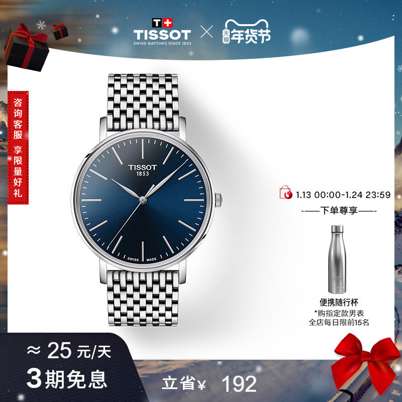 【新年礼物】Tissot天梭魅时系列蓝盘石英钢带手表情侣对表