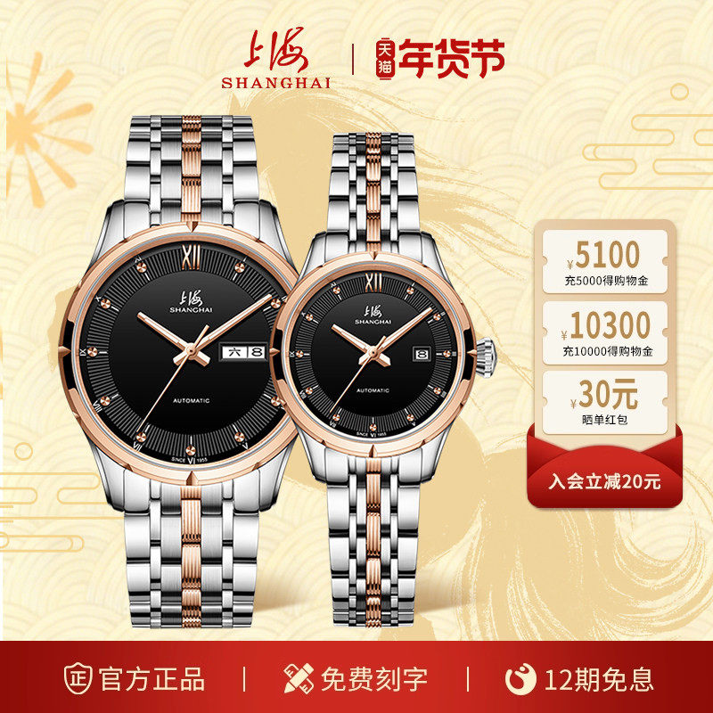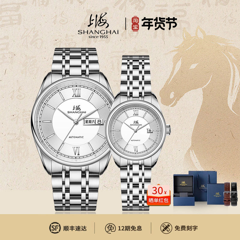 上海牌手表情侣对表全自动机械表一对时尚机械腕表官方正品3008