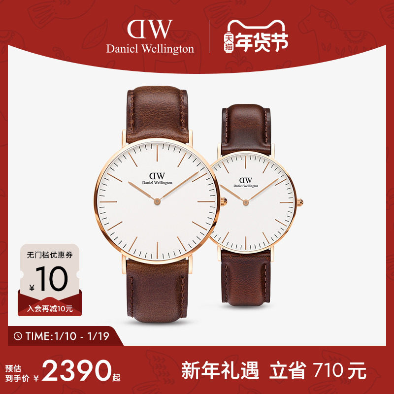DW手表情侣对表 CLASSIC系列复古皮质对表生日礼物送女友 40&36MM