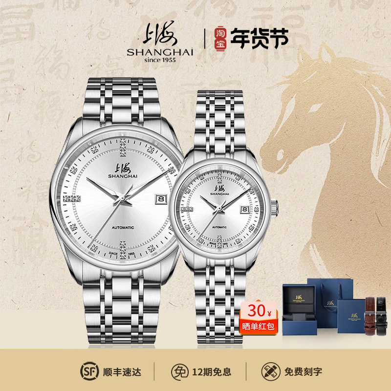 【情人礼物】上海牌手表情侣对表钻石自动机械表防水国产腕表3072