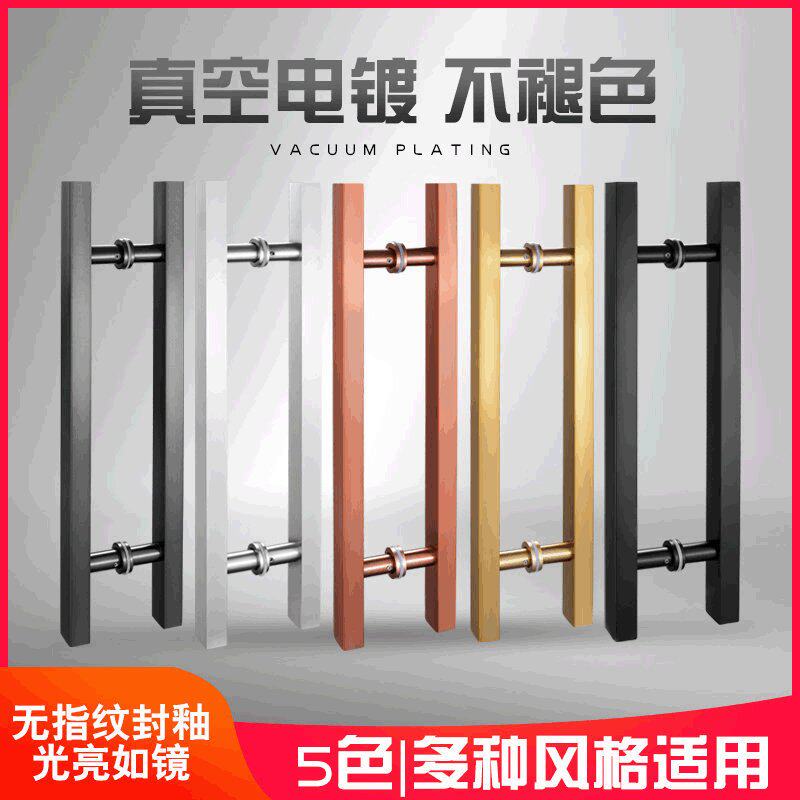 玻璃门拉手不锈钢大拉手方管黑色拉丝玫瑰金钛金双开门木门门把手