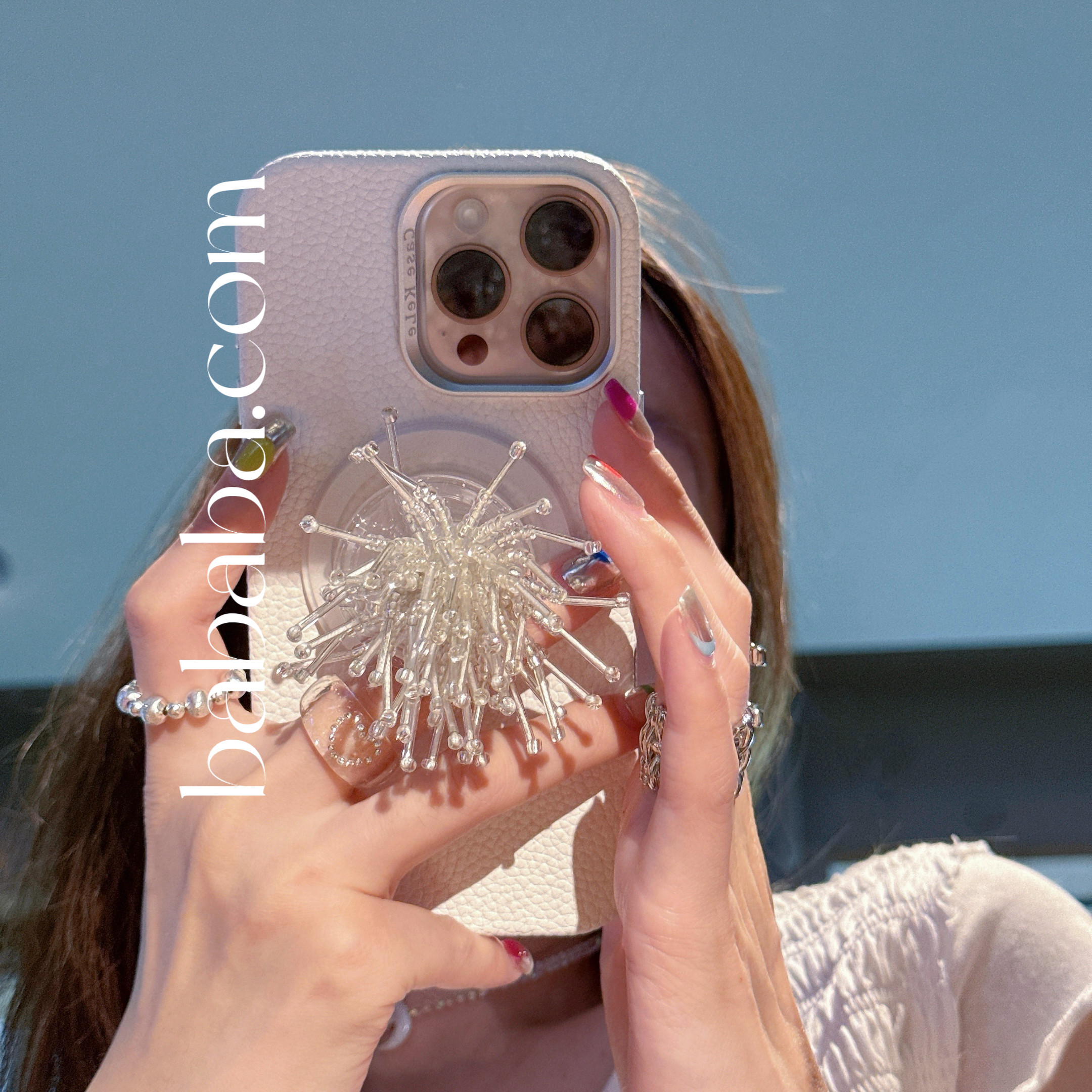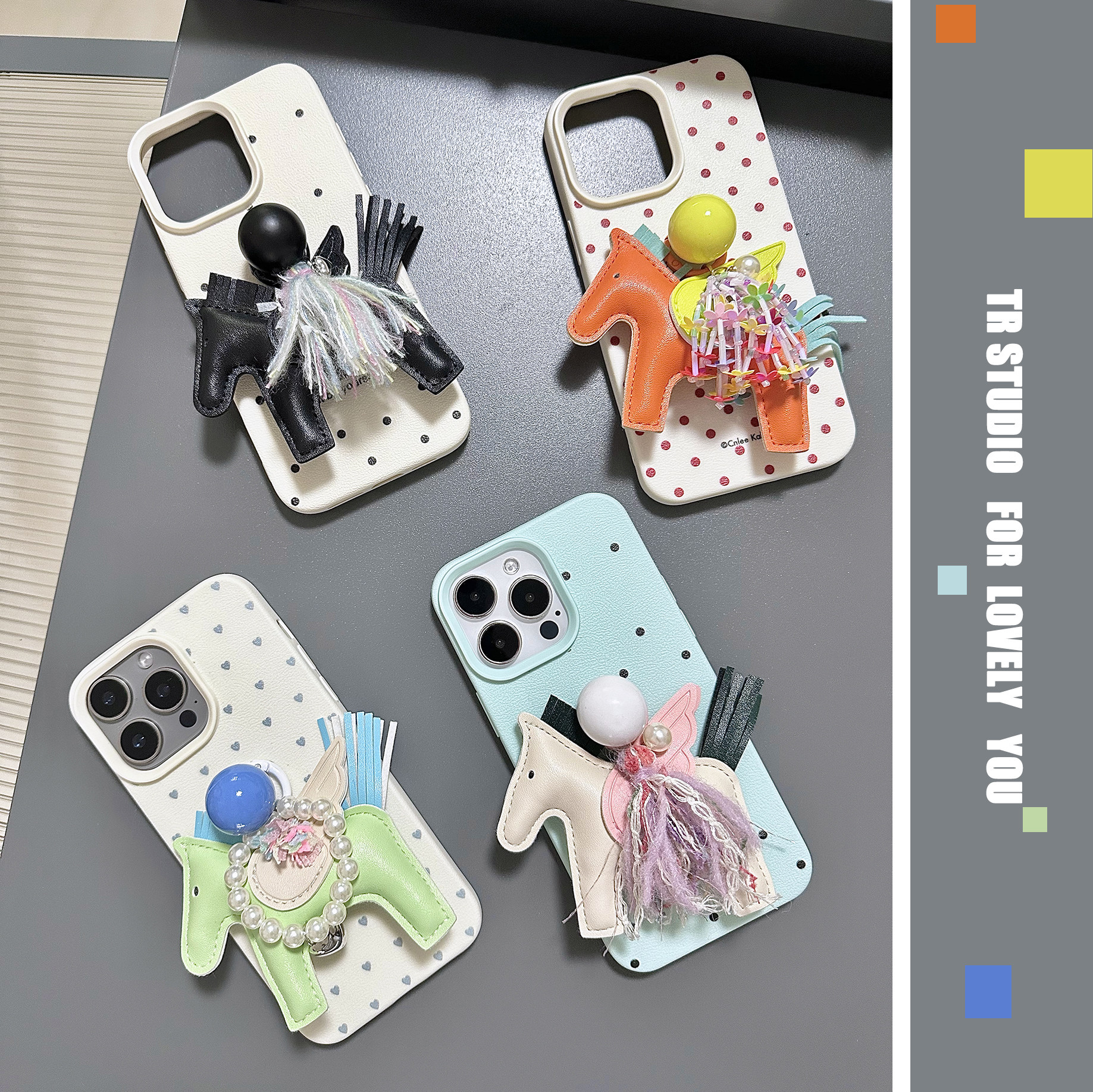 TRstudio原创设计马年本命年皮马流苏挂饰珍珠球球支架手机壳适用于iphone16promax1514花朵少女心苹果壳夏天