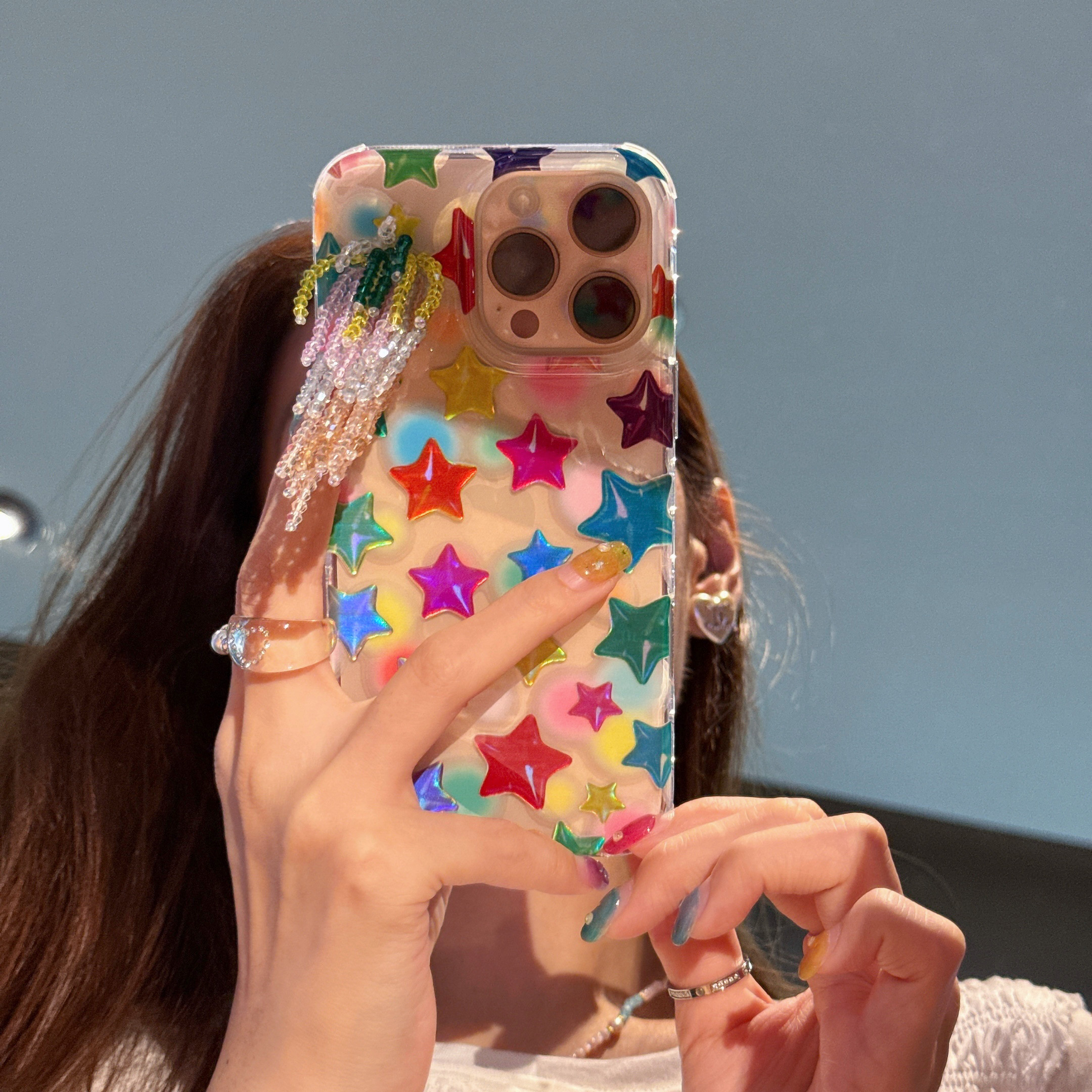 韩国ins小众设计款彩色镭射星星适用iPhone16promax手机壳苹果17烟花流苏保护套14pro原创13新款15promax双层