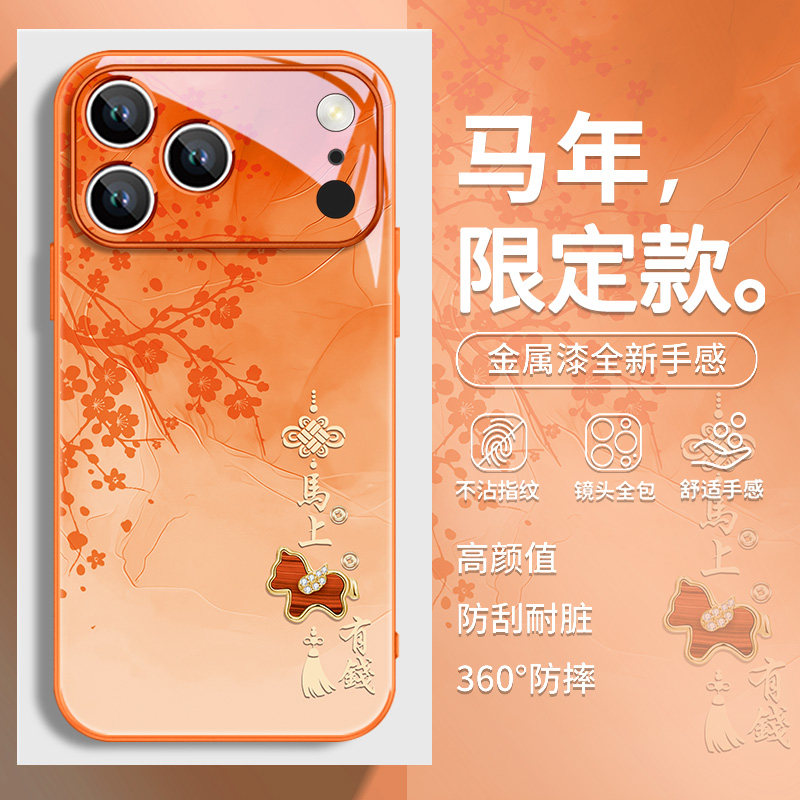 流苏小马适用苹果17promax手机壳马年iphone17新款16马上发财14福字15中国风13高级感xs玻璃12pro暴富11有钱