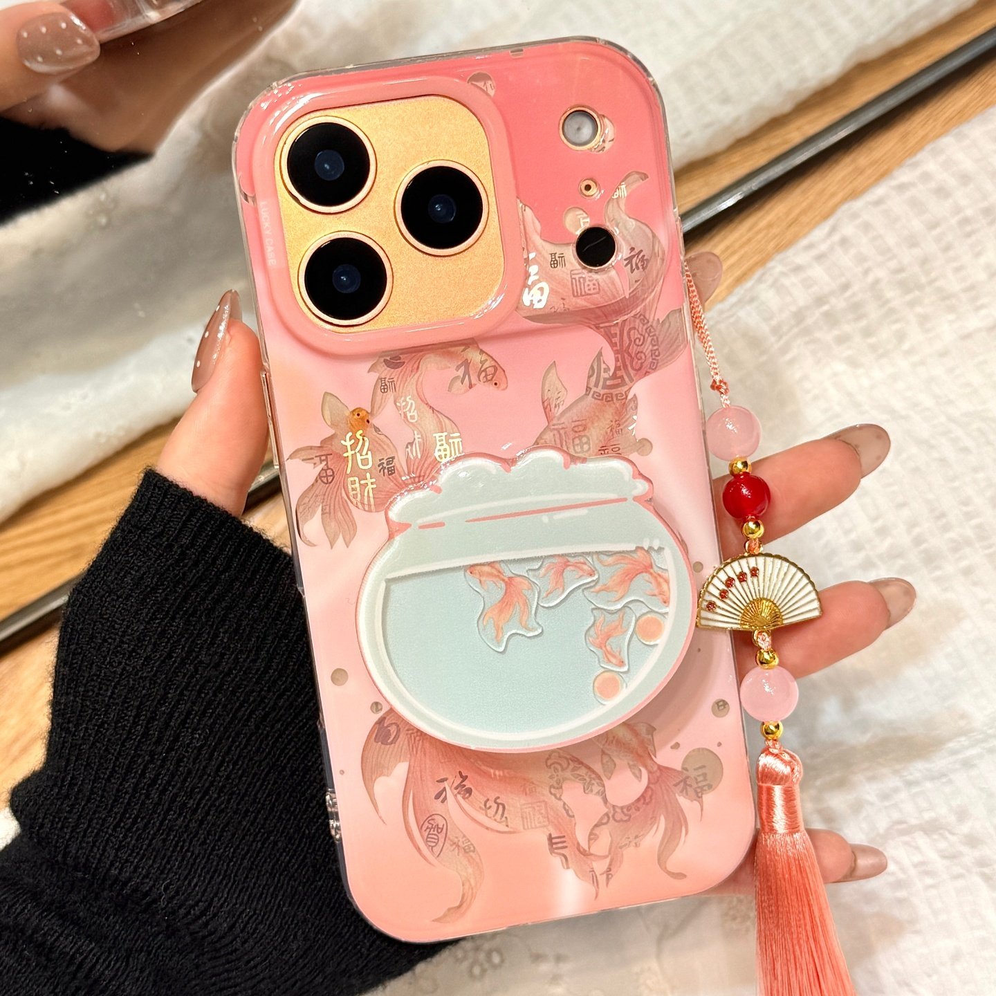 晕染粉新年百福图锦鲤鱼缸支架流苏适用于iphone17promax苹果14手机壳15新款16pro女13双层17pm硅胶防摔软壳