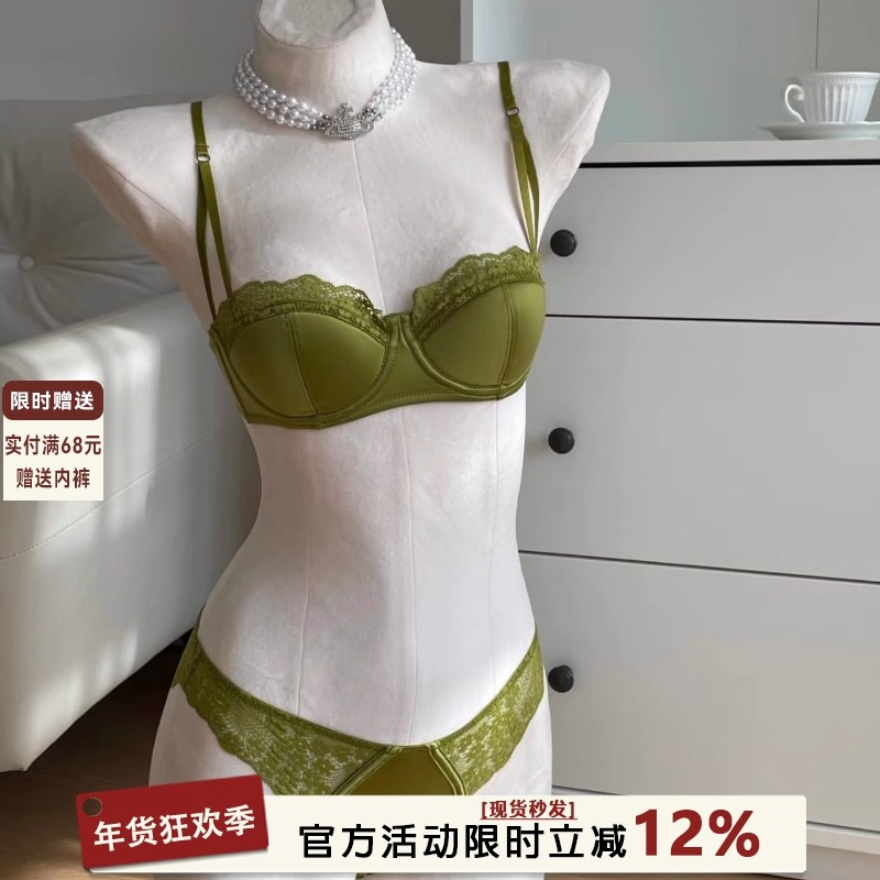 法式蕾丝内衣女小胸聚拢法式半罩杯性感薄款舒适透气女士文胸套装