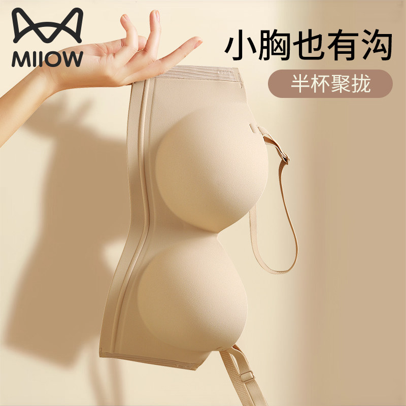猫人无痕内衣女士小胸聚拢显大无钢圈收副乳薄款半罩杯美背文胸罩