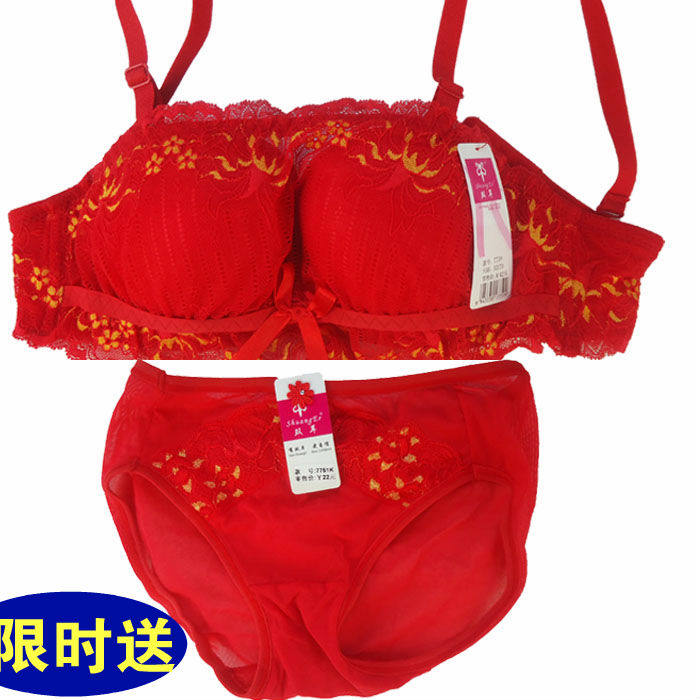 半罩杯聚拢性感无钢圈上托红色文胸套装无肩带内衣文胸套装小胸女