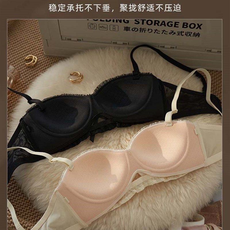 内衣半罩杯小胸聚拢aa杯上托防滑无肩带胸罩女甜美少女文胸套装