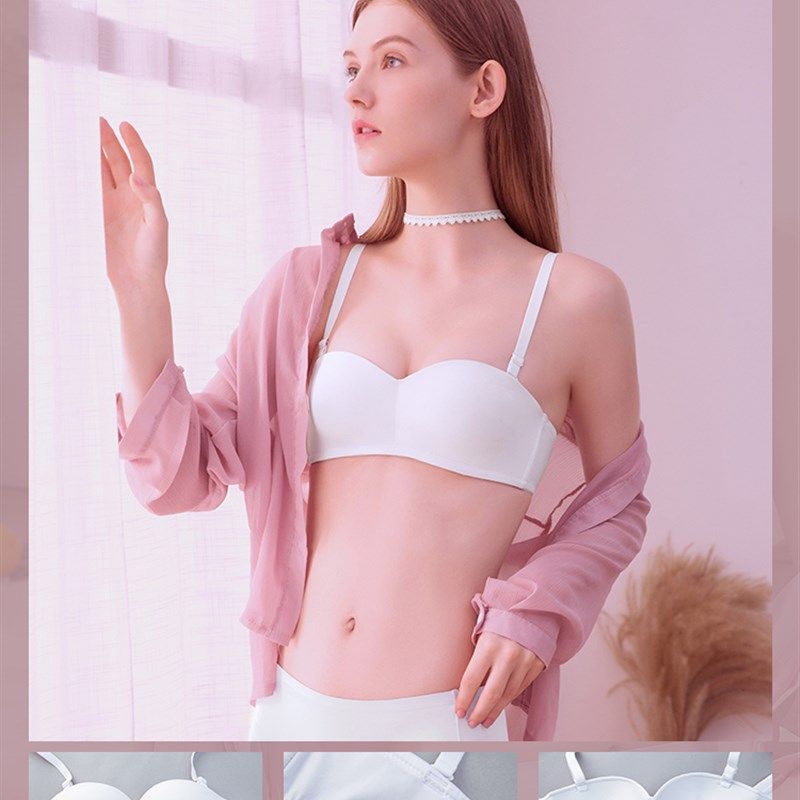 露肩无肩带胸罩小胸前扣聚拢内衣不会掉文胸女平口托胸半罩杯裹胸