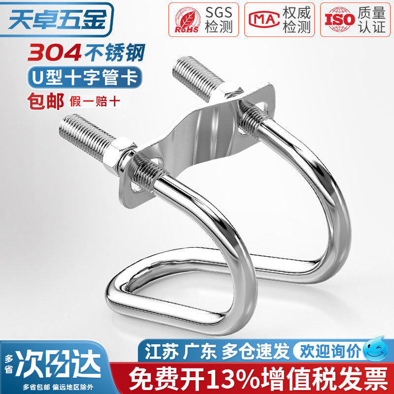 天卓五金U型螺栓304不锈钢U形螺丝夹管管卡管夹固定卡扣套装M6-24