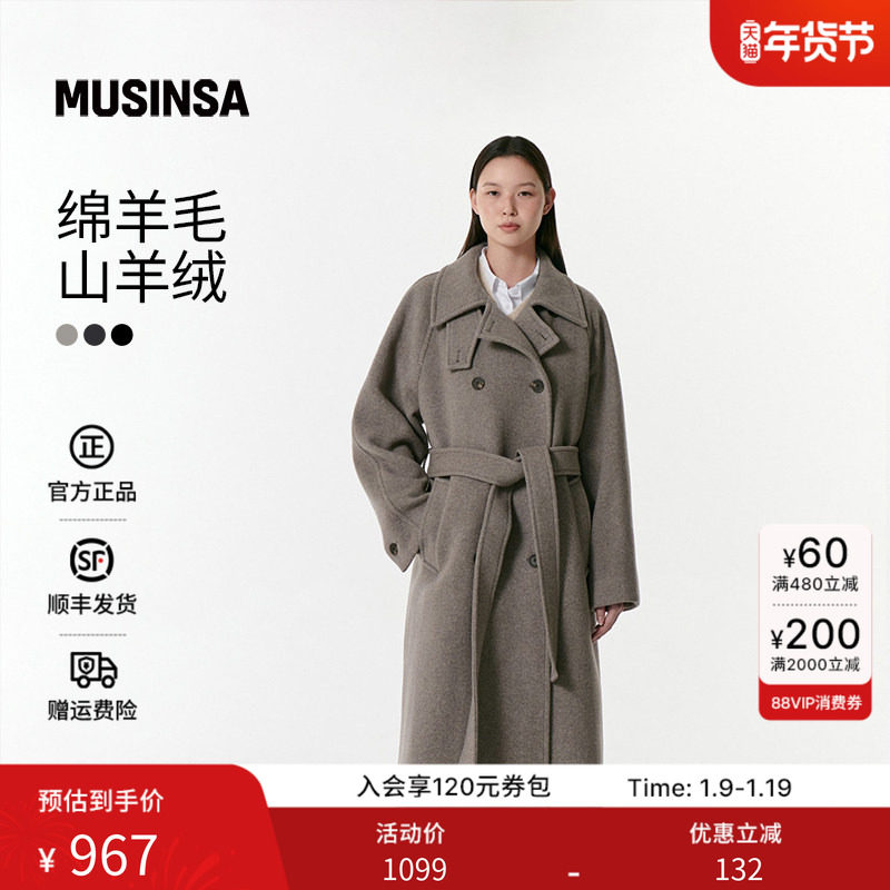 【含羊绒羊毛】韩国25秋冬女士长款毛呢大衣musinsa standard