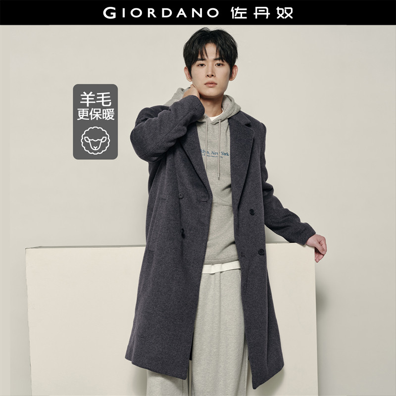 [卢正义韩国明星款]佐丹奴男女同款双排扣中长款羊毛大衣01074918