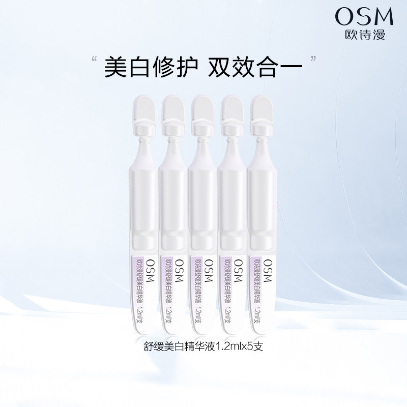 【百补】欧诗漫安心小白管舒缓美白精华液1.2ml*5支官网正品