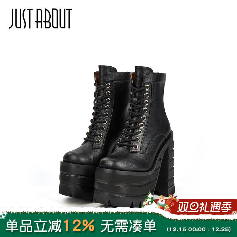 just about黑色马丁靴高帮鞋复古街头帅气系带厚底短靴女潮ins风