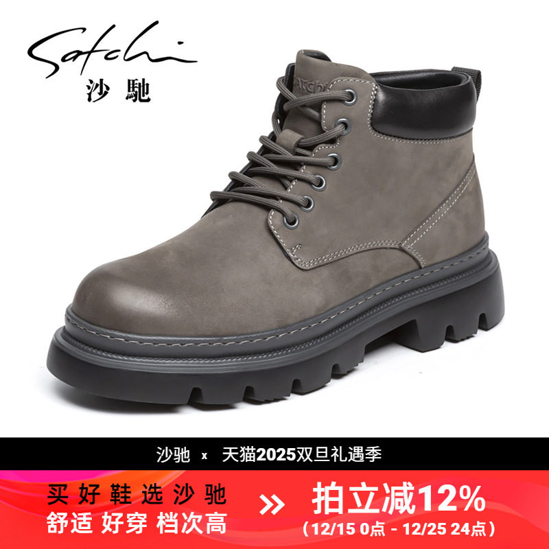 沙驰男鞋高档靴子真皮加绒冬季保暖绒里马丁靴高帮鞋户外靴子棉鞋