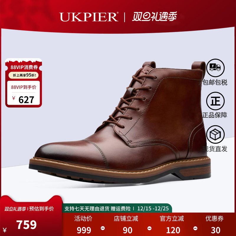 clarks其乐男鞋秋冬款系带短靴休闲马丁靴高帮鞋Aldwin Cap