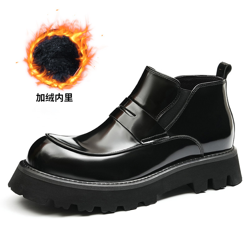 高端羊绒保暖皮靴子男防滑厚底一脚蹬切尔西靴男短靴马丁靴高帮鞋