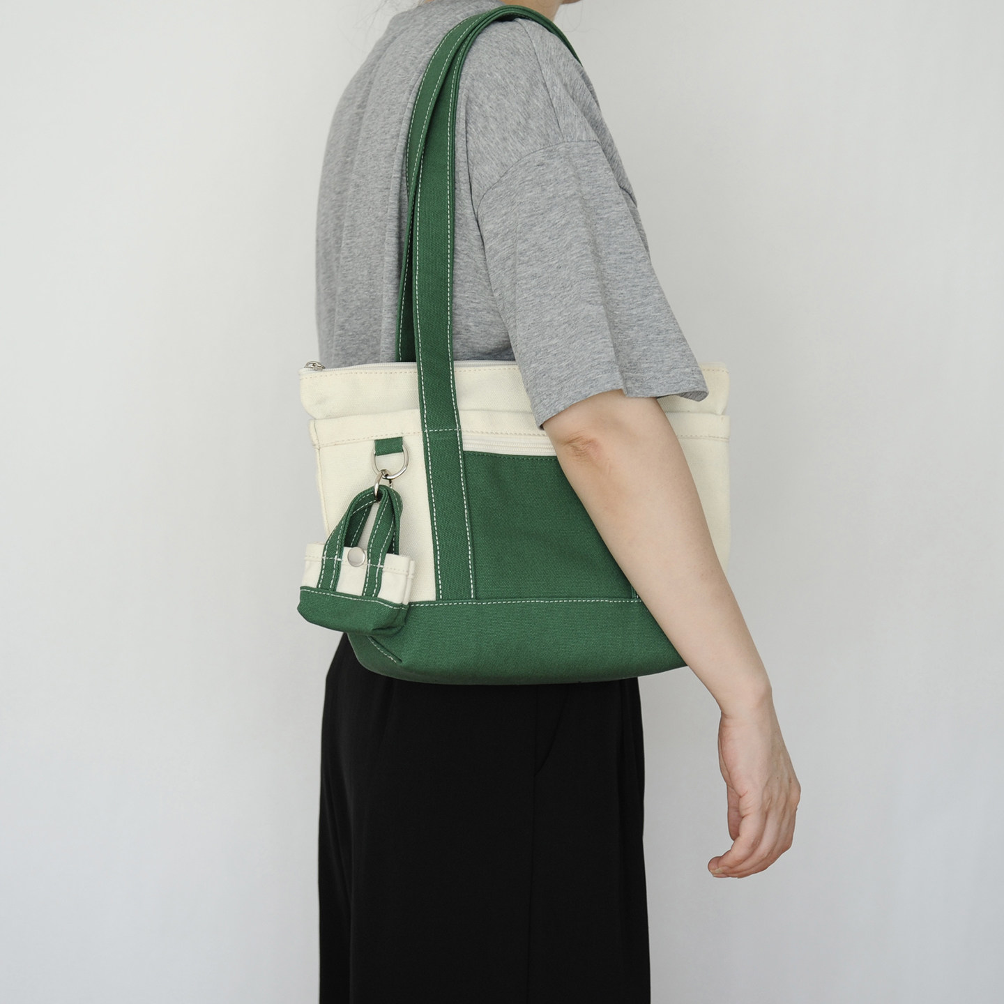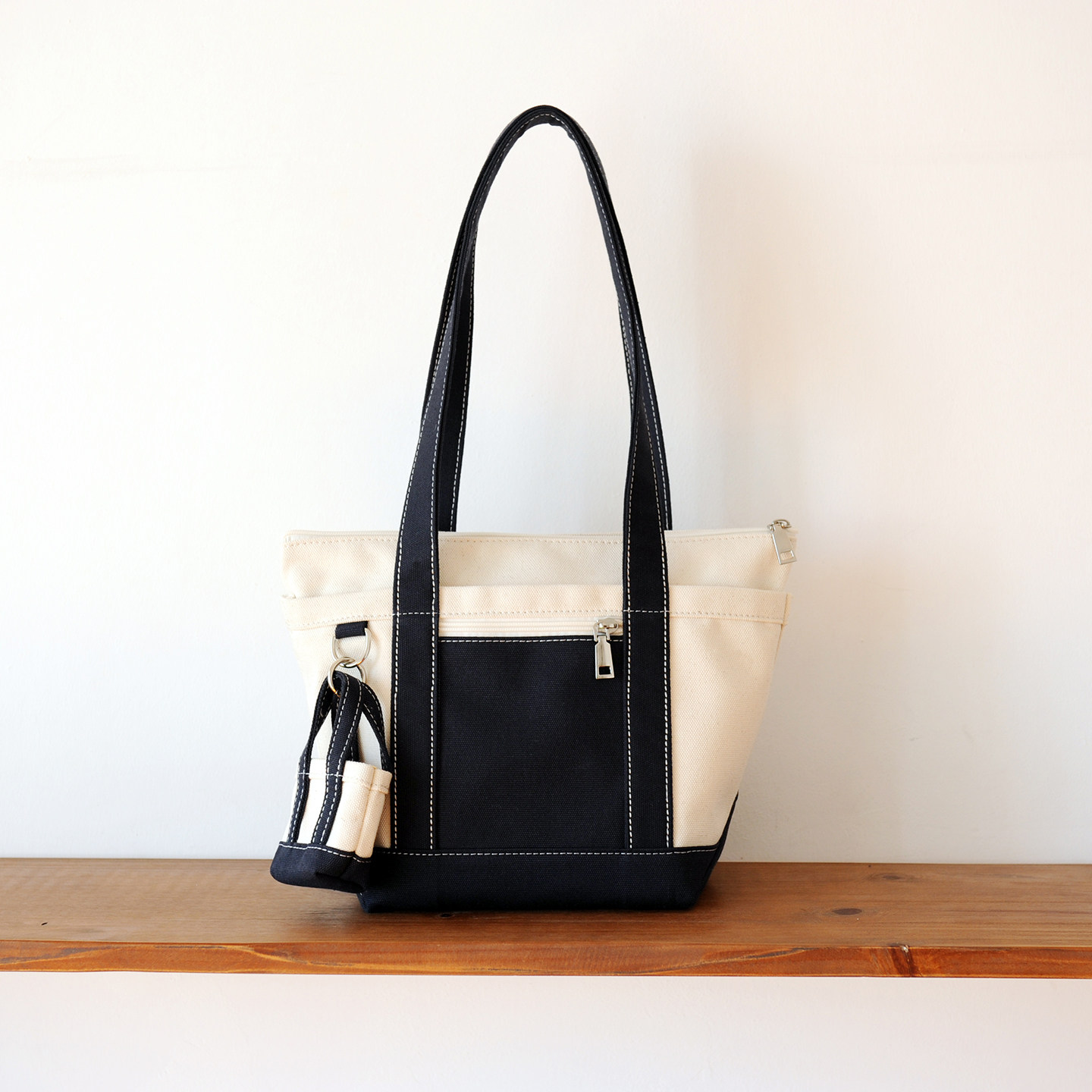 Fayestudio米白藏蓝色经典拼色高级感重磅帆布单肩拉链腋下托特包