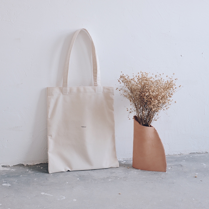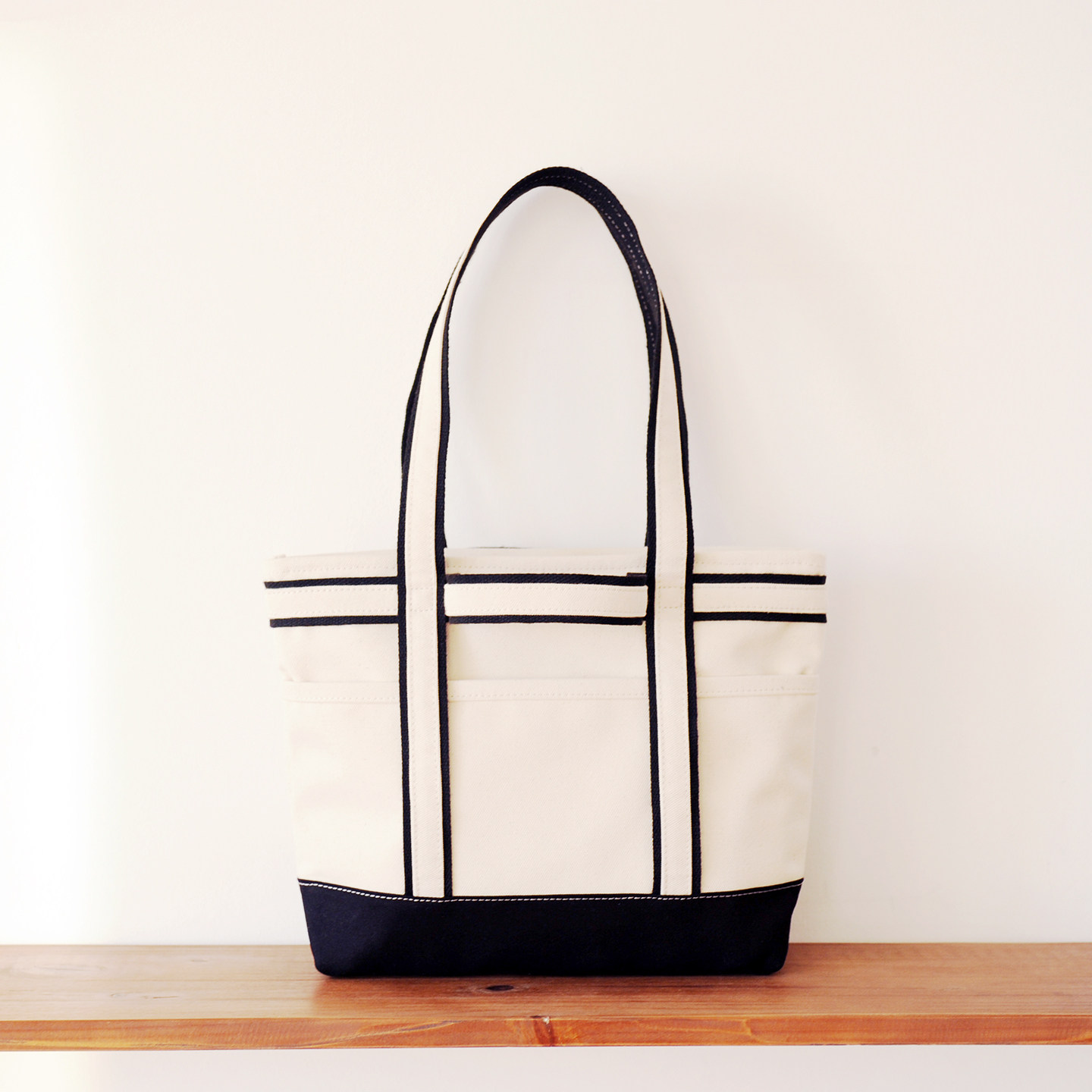 Fayestudio 硬挺重磅括帆布手提托特包 米白藏蓝色通勤饭盒包