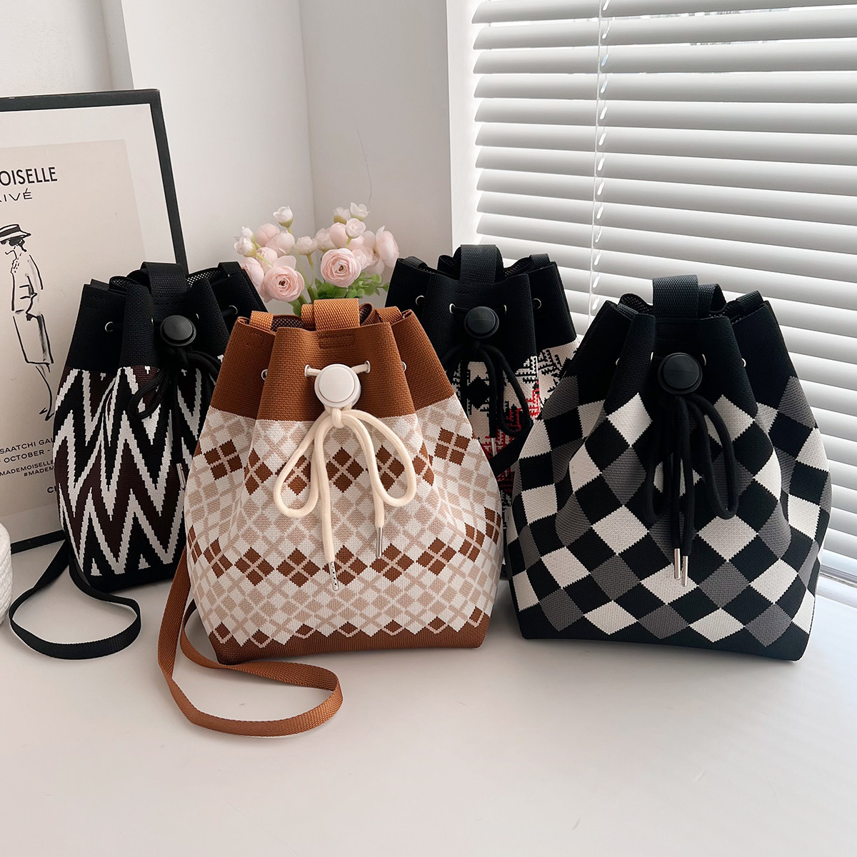 针织水桶福袋包女卡通伴手礼袋手拎包休闲百搭抽绳手提包便当饭袋