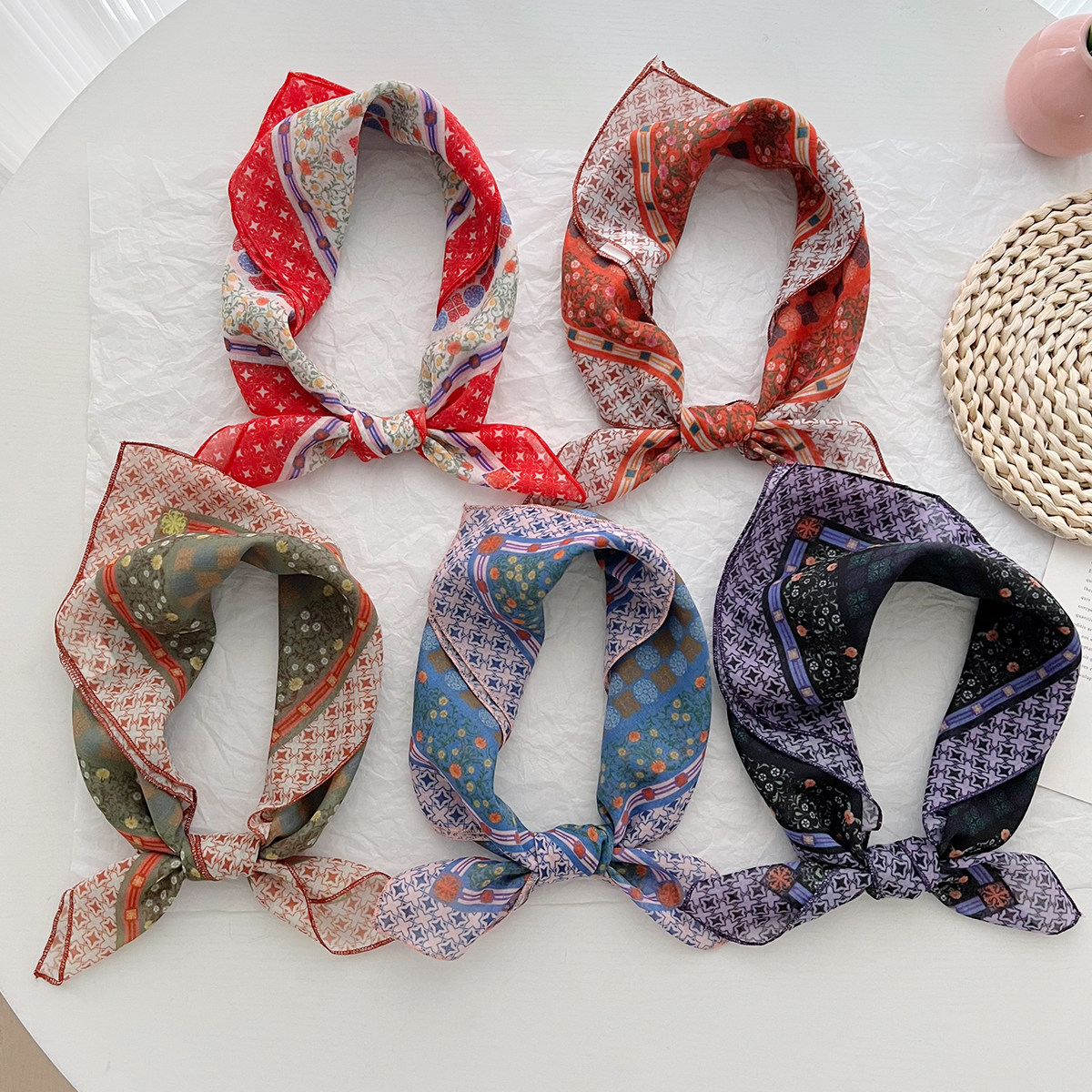 韩国ins复古棉麻头巾丝巾小方巾女春秋薄款围巾绑包装饰系脖领巾