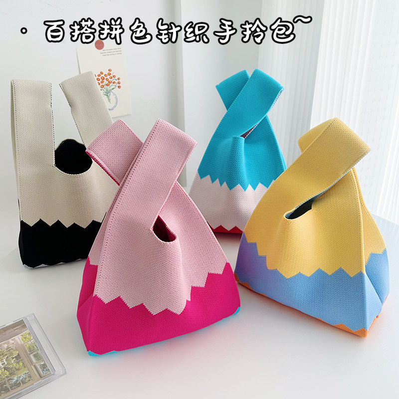 针织彩色背心包百搭拼色马甲包手提包便携便当包袋休闲遛弯手拎包