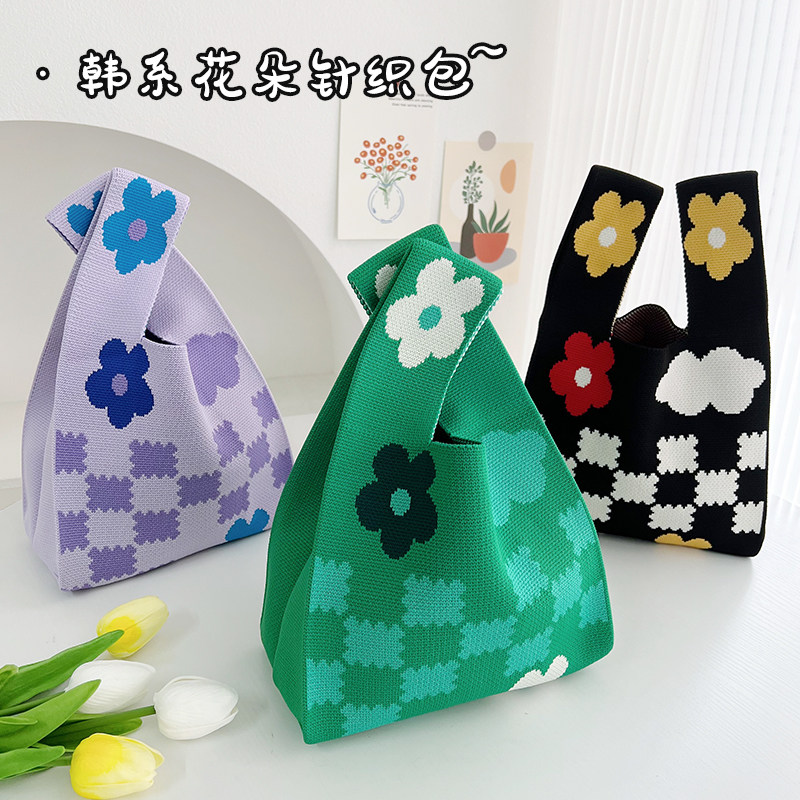 韩系撞色饼干花朵针织包新款小众质感手提包学生休闲托特包手拎包