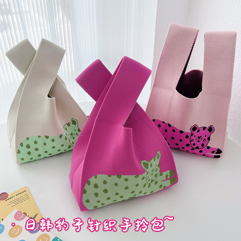 新款粉红豹子少女针织马甲包韩版潮流手提托特包大容量出行便捷包