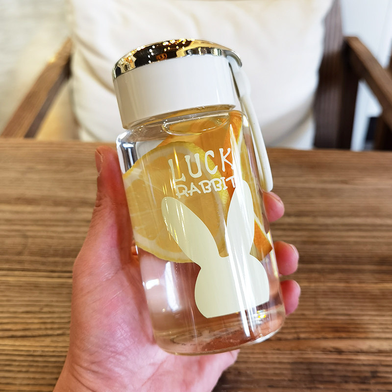 便携式透明双层带盖玻璃杯简约家用办公室泡茶杯水杯女学生随手杯