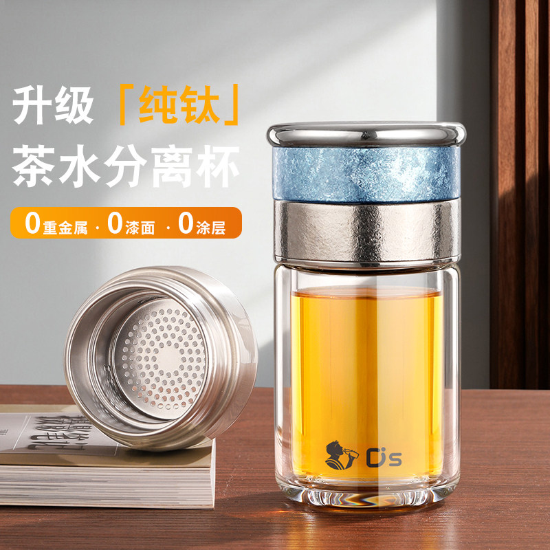 点盛纯钛茶水分离杯双层玻璃杯茶杯男士泡茶专用车载便携式水杯子