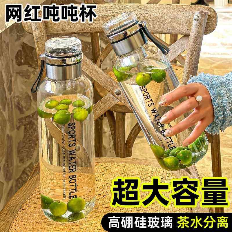 超大玻璃水杯大容量耐热防爆运动透明杯子男女茶水分离提手便携式
