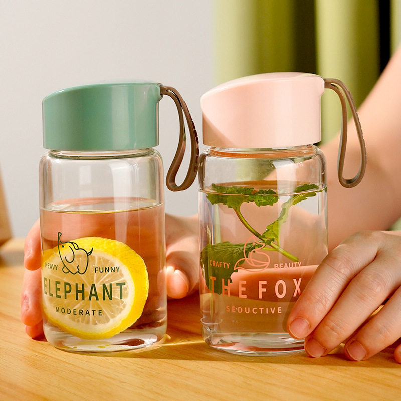 缤客新款简约小巧可爱便携式玻璃杯子提绳单层高硼硅水杯学生情侣