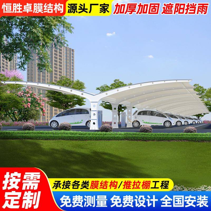 大型双开形膜结构充电桩停车棚小区电动汽车充电站雨蓬户外遮阳篷