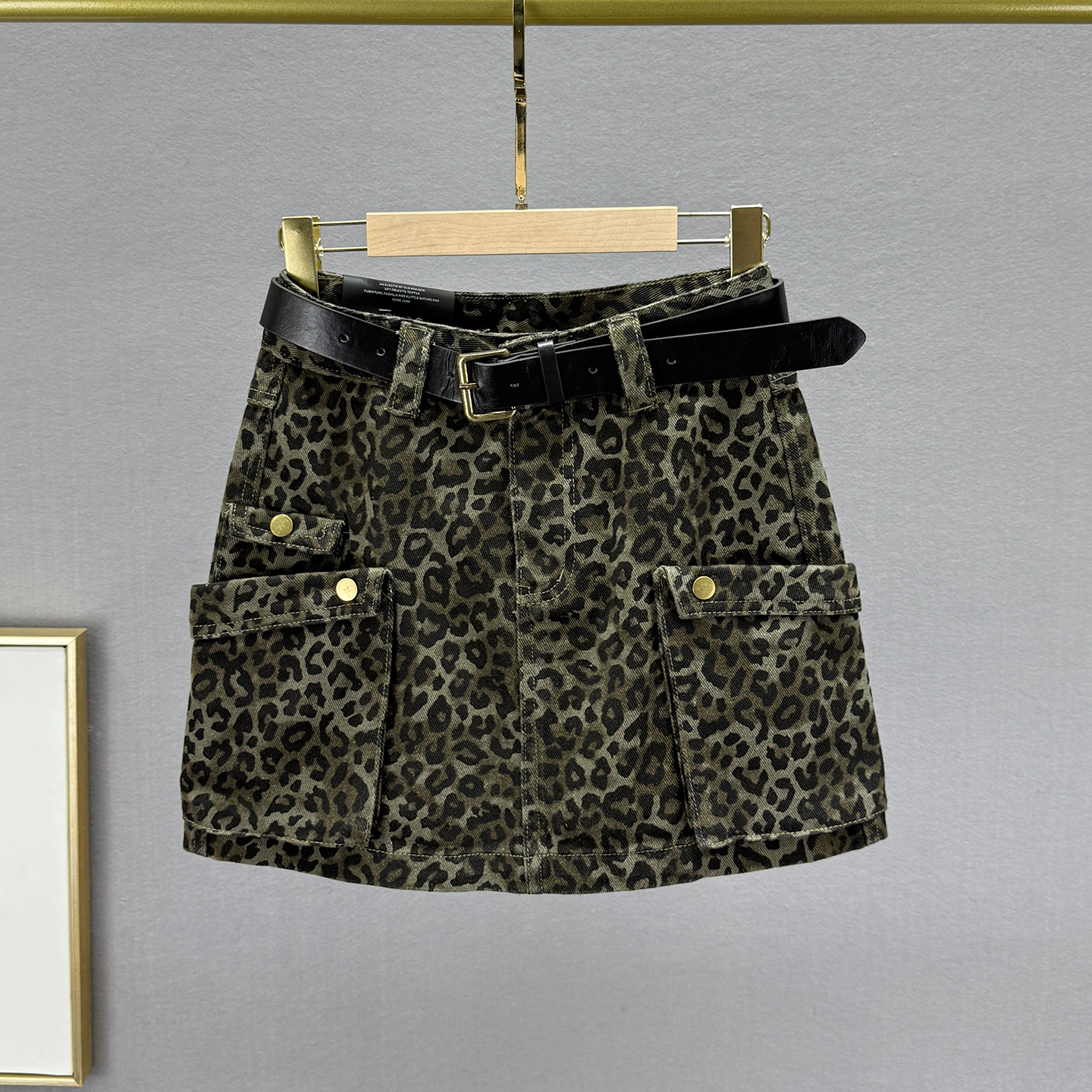 豹纹牛仔半身裙女短裙2025年秋季新款高腰修身显瘦港风A字打底裙