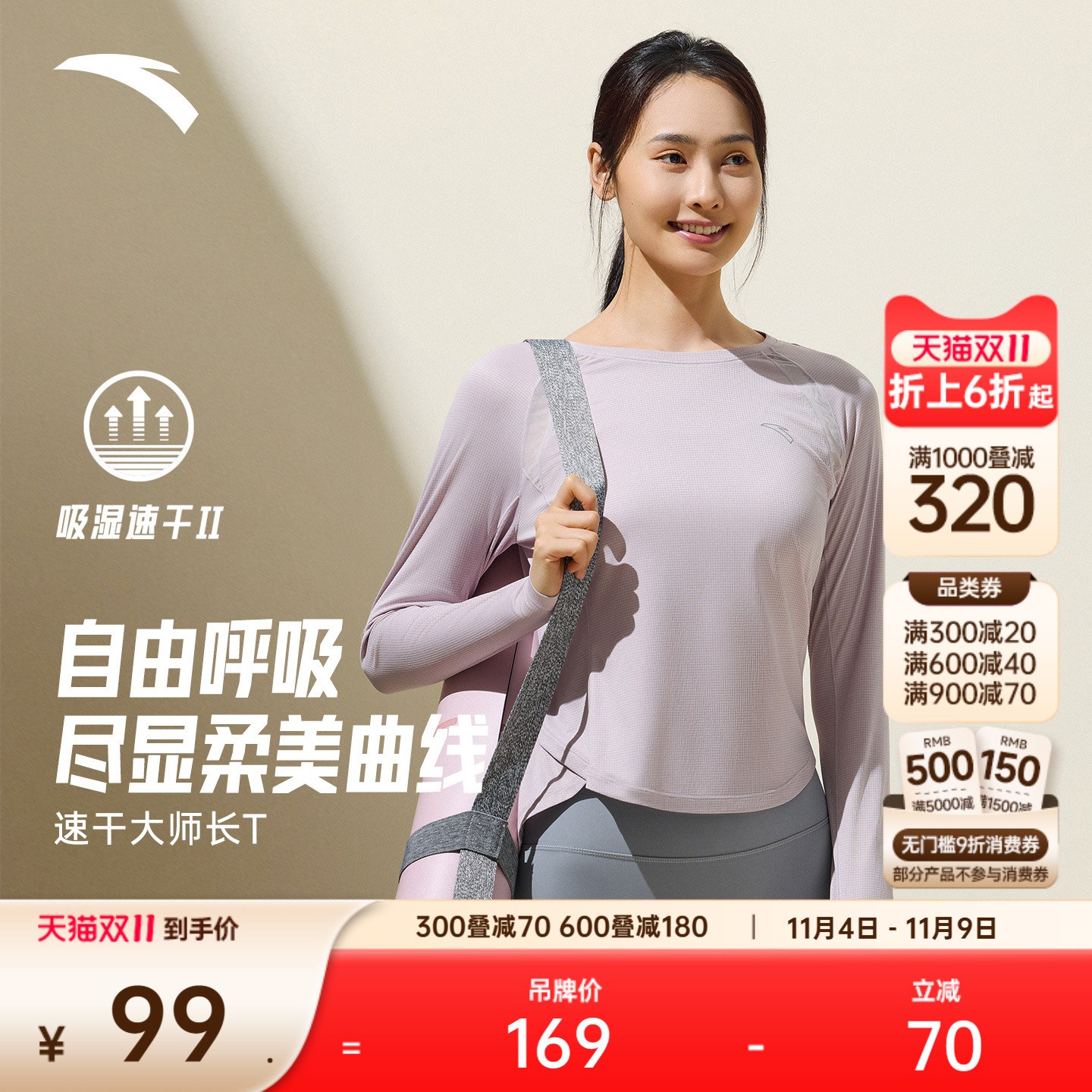 安踏速干大师丨长袖t恤女士冬季瑜伽服健身训练修身跑步运动上衣