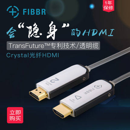 菲伯尔FIBBR光纤HDMI线 4K高清线Crystal水晶透明电视线1米2米