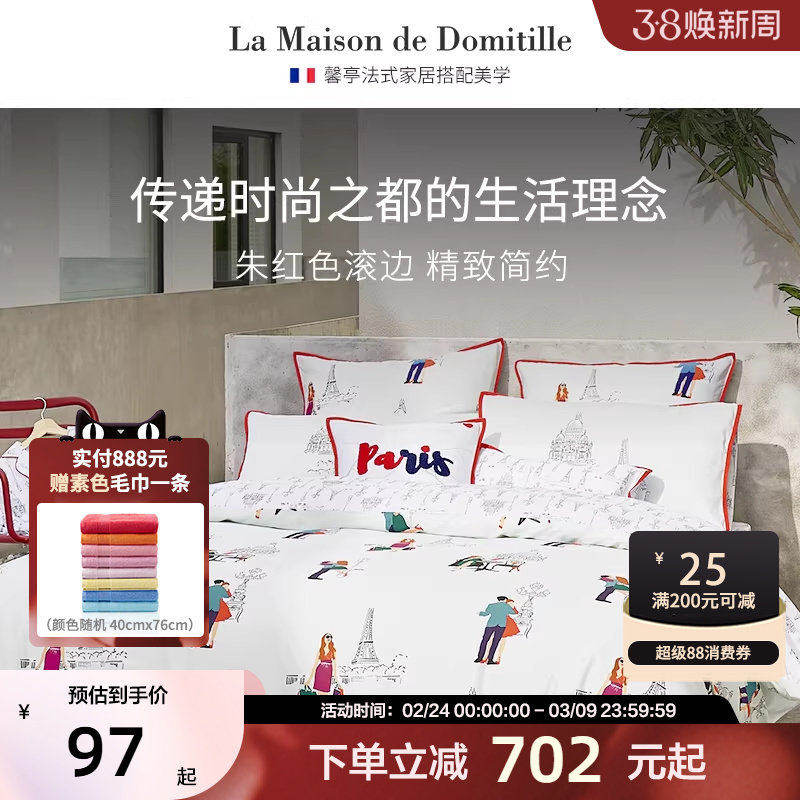 馨亭家纺全棉纯棉被套床单三件套被套靠垫套小抱枕巴黎小姐单被套