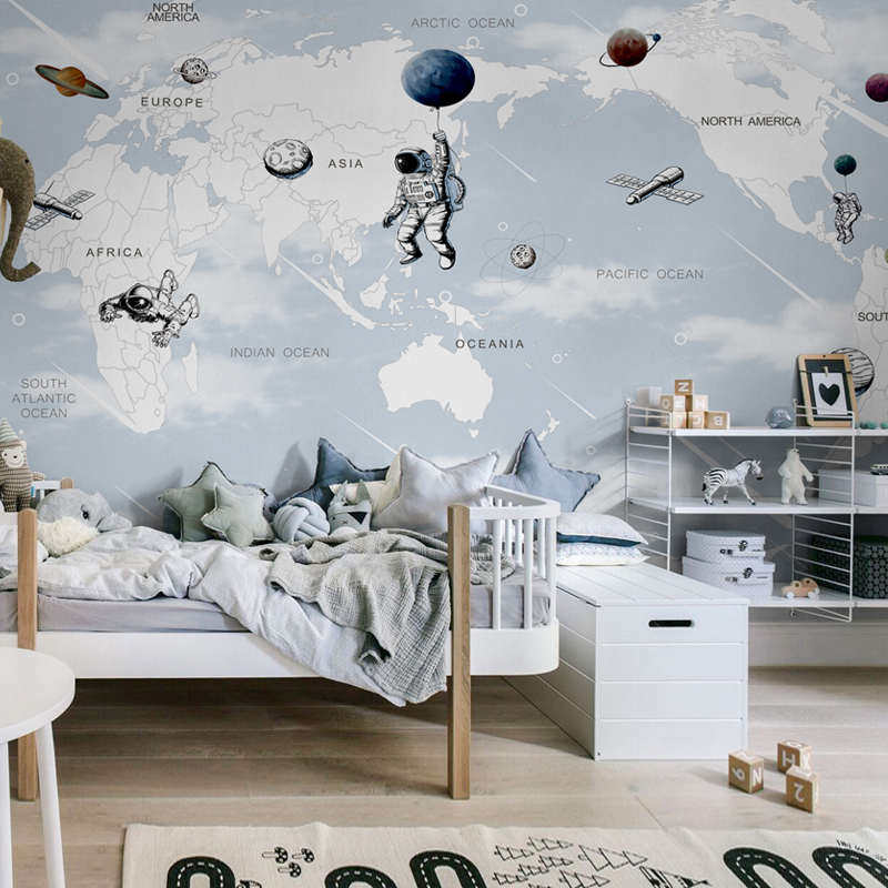 儿童房壁纸男孩墙纸ins风卧室男生幼儿园壁画卡通墙布地图背景墙
