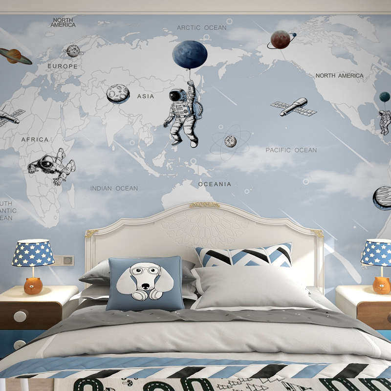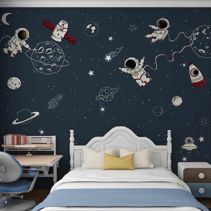 墙纸房间 卧室男生 宇航员壁画背景墙儿童房壁纸男孩墙布无缝全屋