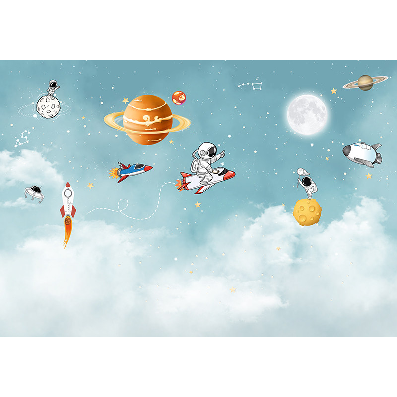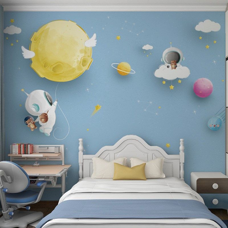 墙纸儿童房墙壁贴纸可爱太空人墙布男生卧室壁纸卧室壁布定制壁画
