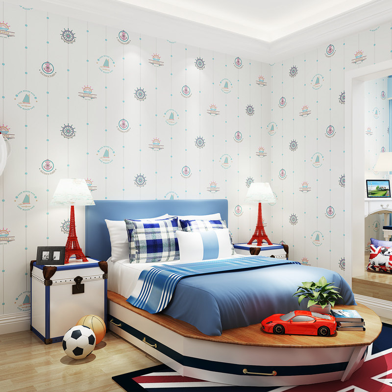 新款帆船墙纸航海儿童房间男孩男生男童卧室环保无甲醛卡通无纺布