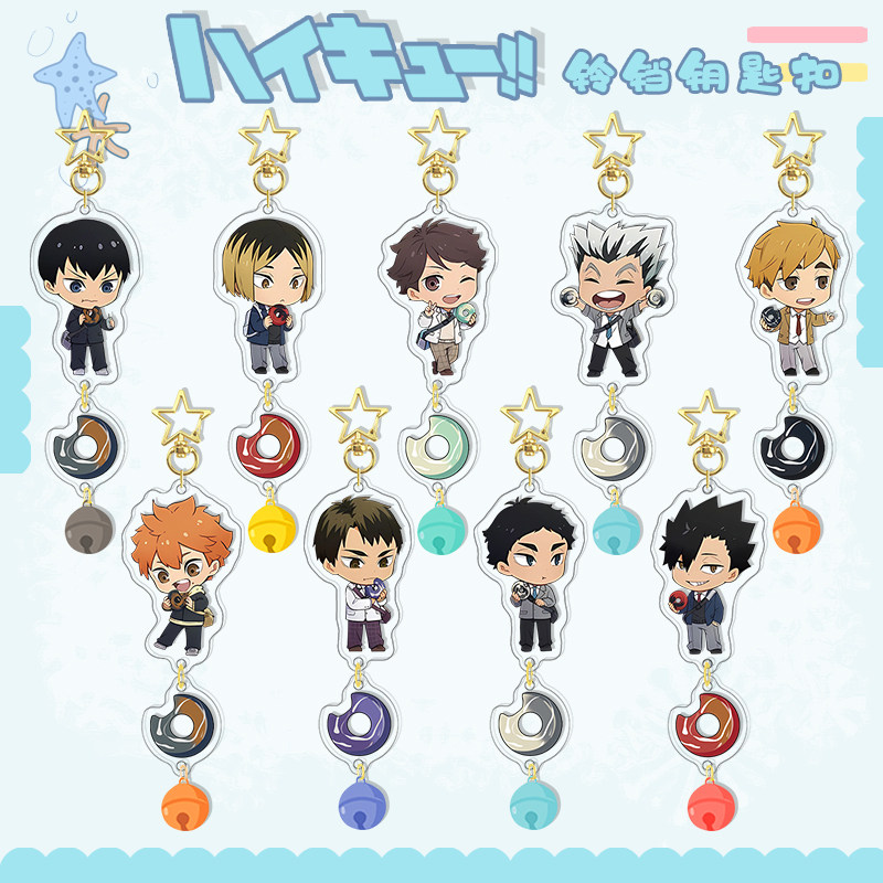 排球少年Q版铃铛吊坠钥匙扣挂件 孤爪研磨及川彻动漫周边书包挂饰