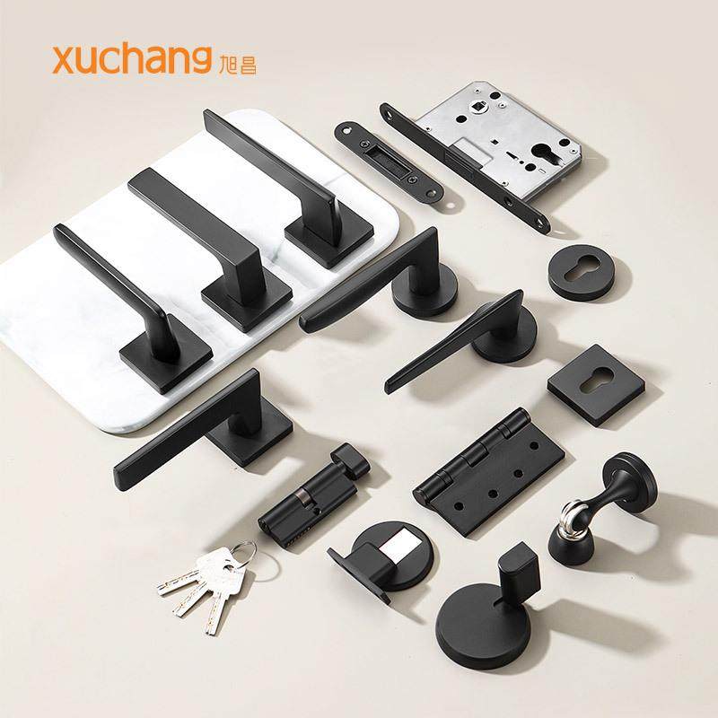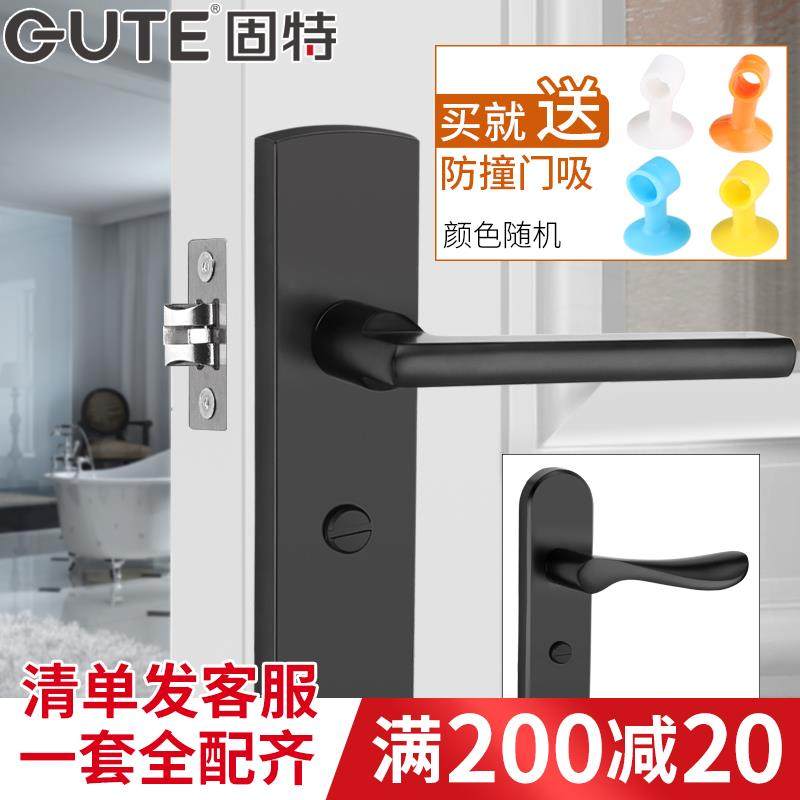 黑色房间门锁家用卧室门锁具分体通用静音木门把手室内卫生间门锁