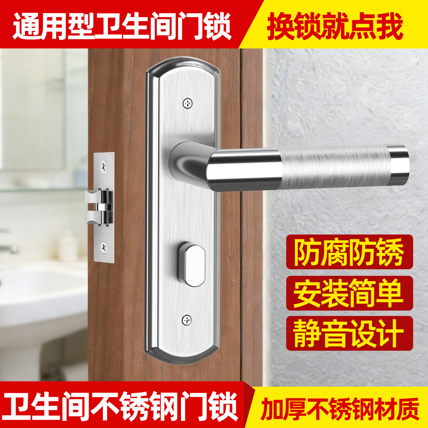 卫生间门把手锁不锈钢通用厕所浴室门锁家用室内卫生间门锁通用型