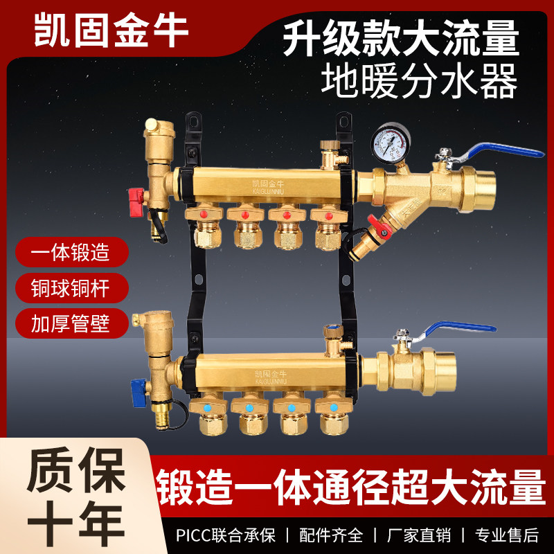 地暖分水器一寸20工程全铜16家用地热管超大流量进出集水过滤阀门