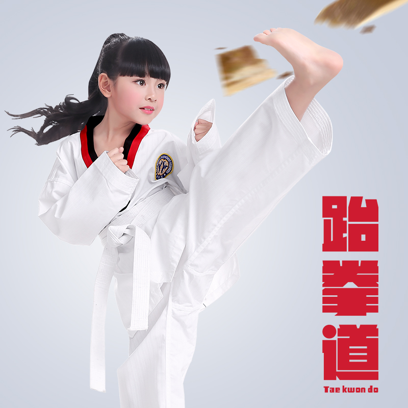 儿童跆拳道服成人竞技纯棉长裤衣服装男童短袖空翻服白色长袖专柜