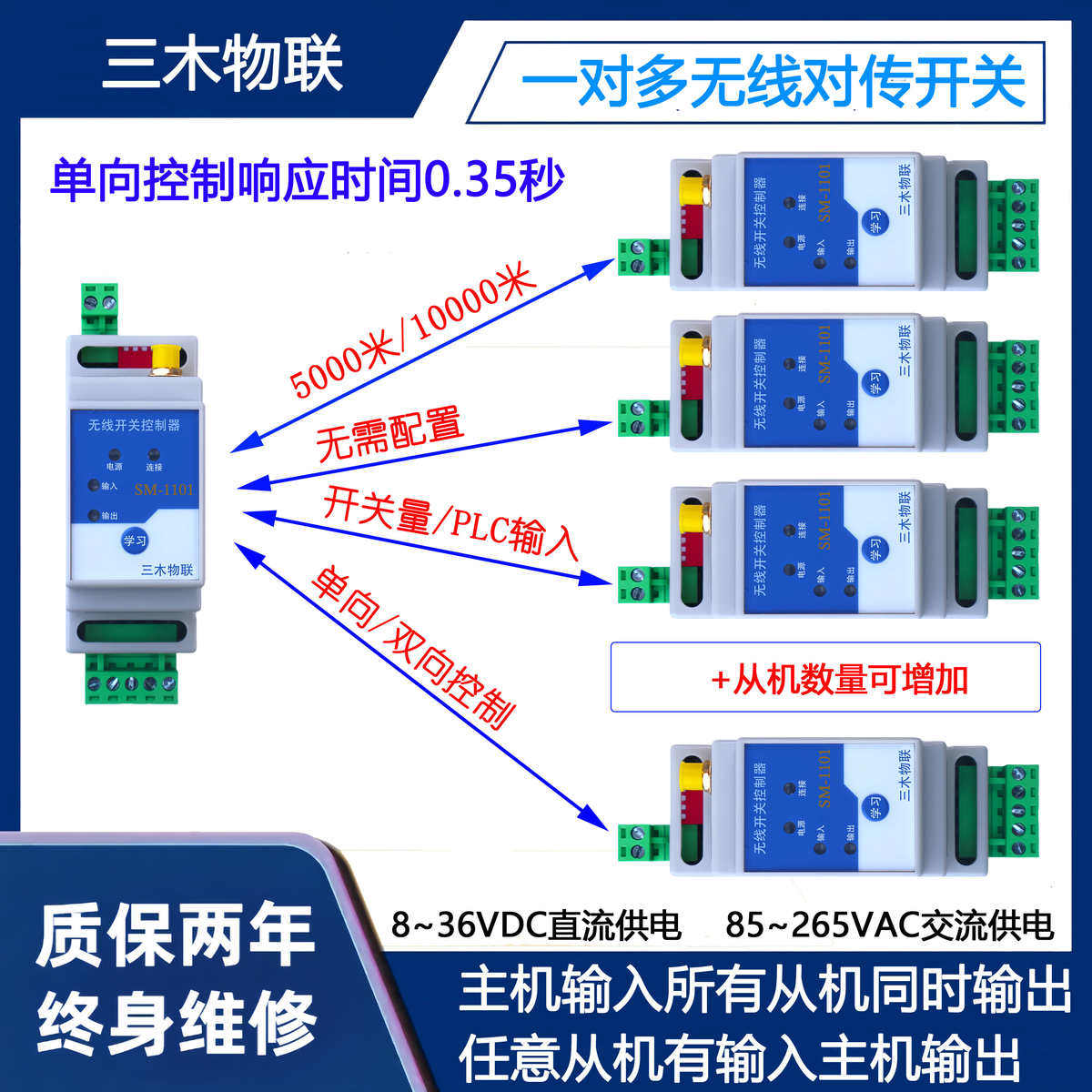 超远开关量无线传输模块PLC远程控制无线双向对传开关继电器输出